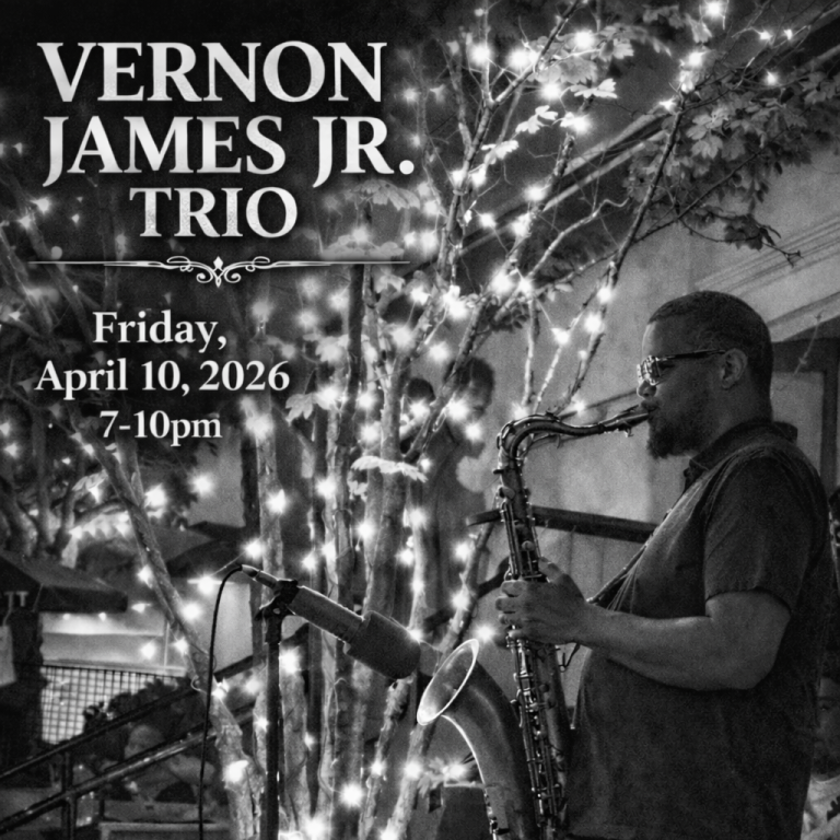 Enjoy great tunes and wine from 7-10 p.m. as Vernon James Jr. Trio performs at The Sycamore.